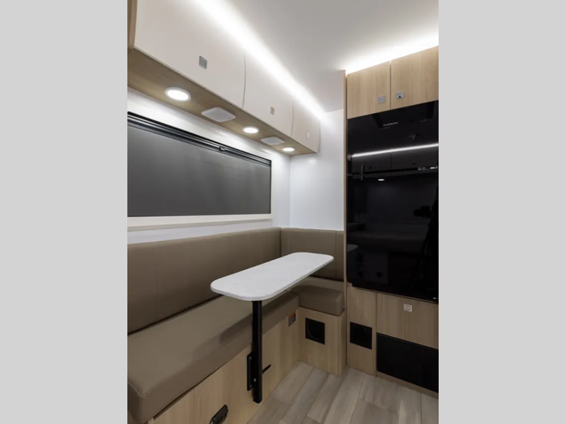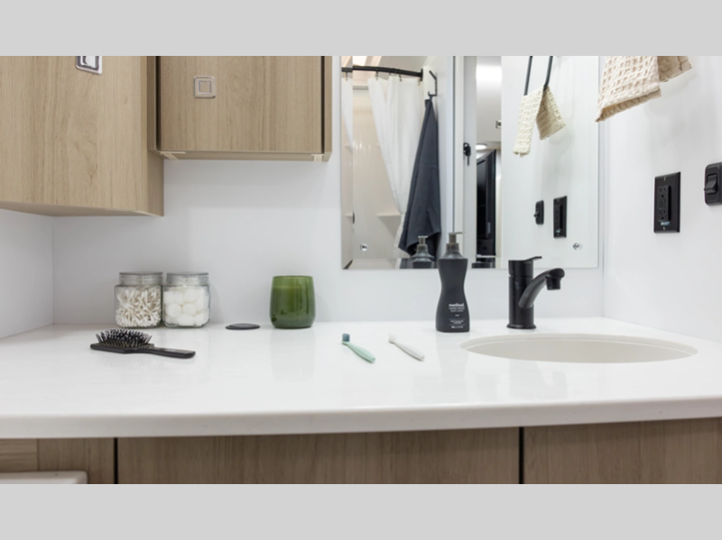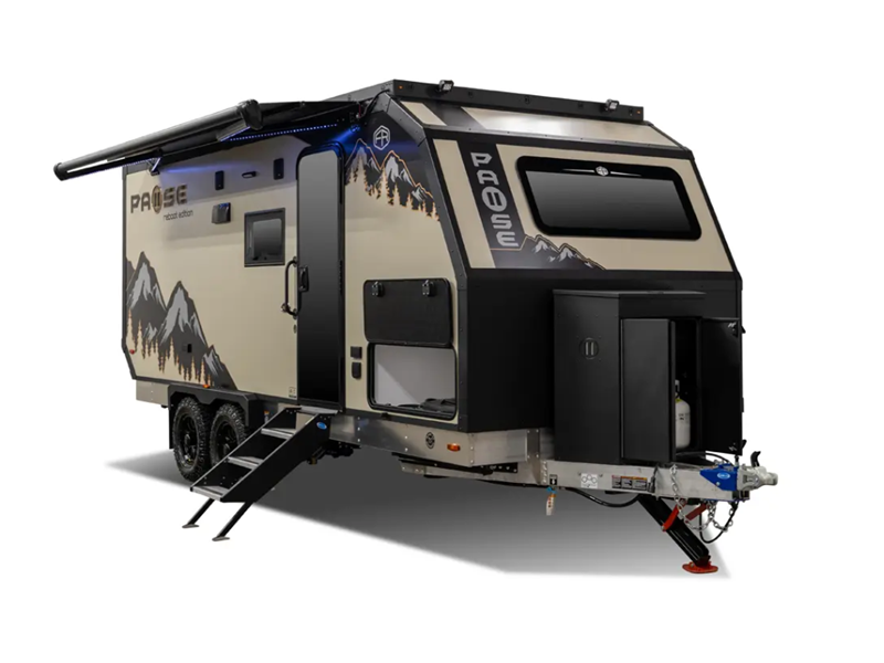 Some of the key features found on the Pause Reboot Edition are the MORryde Huck-Rivet aluminum frame with a MORryde Shear Spring suspension, 25" ground clearance, and 200-watts of solar on the roof for off grid power. The interior includes Thermo Foiled countertops, European style wooden cabinets, a fiberglass shower, and more comforts.